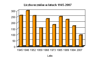 Najniższą liczbę zanotowano w 2007 roku - 95. uczniów. W latach 1978 - 1985 notuje się